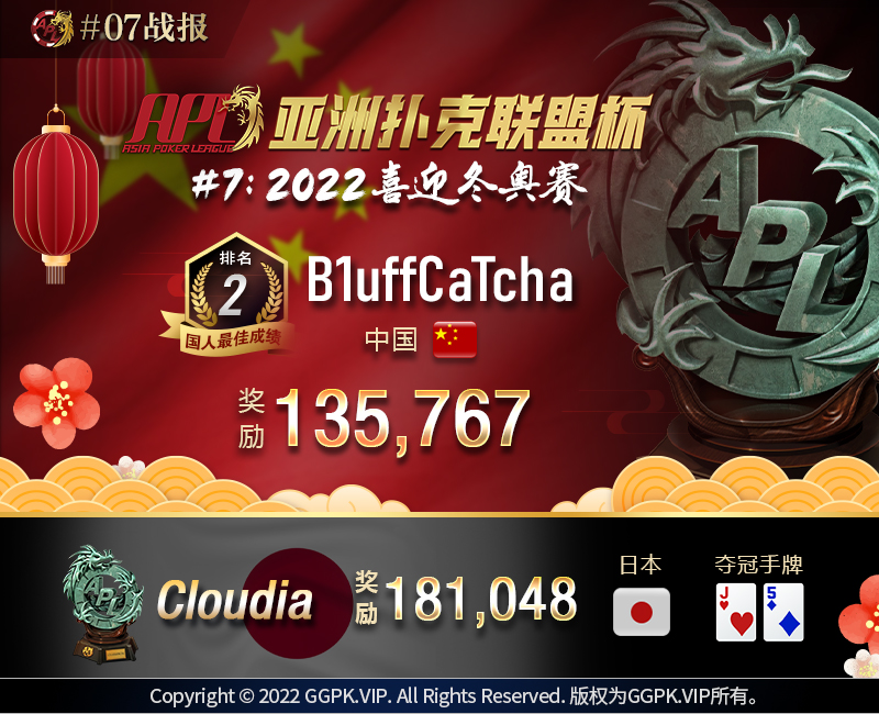 6名国人玩家在APL#7: 2022喜迎冬奥赛中进入决赛桌,其中以中国玩家B1uffCaTcha夺下亚军成国人最佳名次,斩获135,767奖励。